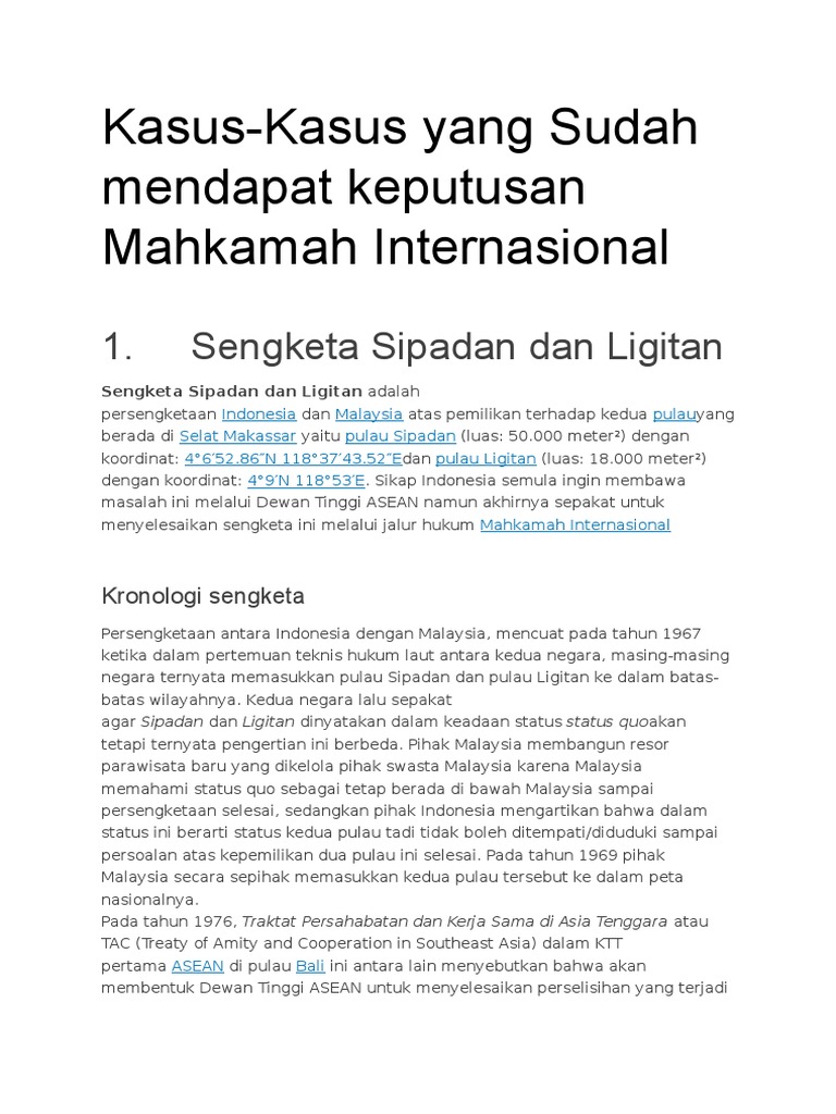 Sengketa pulau sipadan dan ligitan dilihat dari hukum internasional. Lepasnya pulau sepadan dan ligitan dari indonesia menjadi materi diskusi. 4°6′52.86″n 118°37′43.52″e / 4.1146833°n 118.6287556°e dan pulau ligitan. Di gedung inilah, pulau sipadan dan ligitan diputuskan menjadi milik malaysia. Namun malaysia menolak dengan alasan negeri jiran itu juga tengah bersengketa dengan.